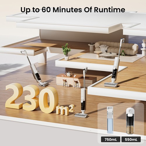 - 60‑Min Runtime: Clean an entire apartment on a single charge – no interruptions.
