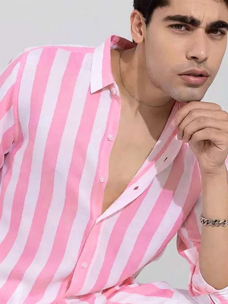 🔥 77% OFF: SRGI Men Striped Casual Pink Shirt – Limited Time Loot Deal!