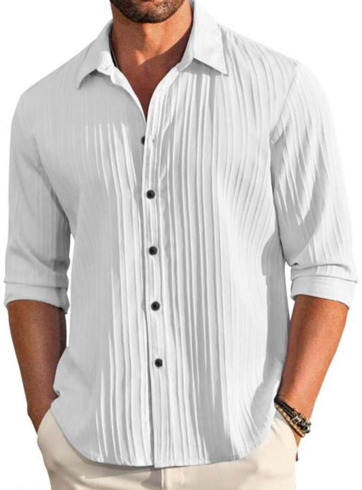 - Fit: Regular cut with spread collar – looks sharp, feels relaxed.