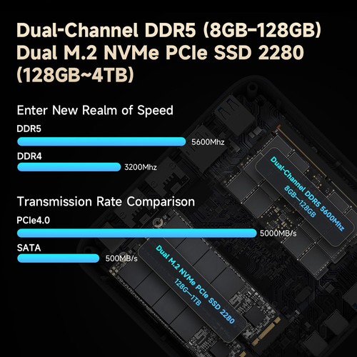 - Display: Quad 4K support via HDMI + DP – immersive visuals on any setup.
