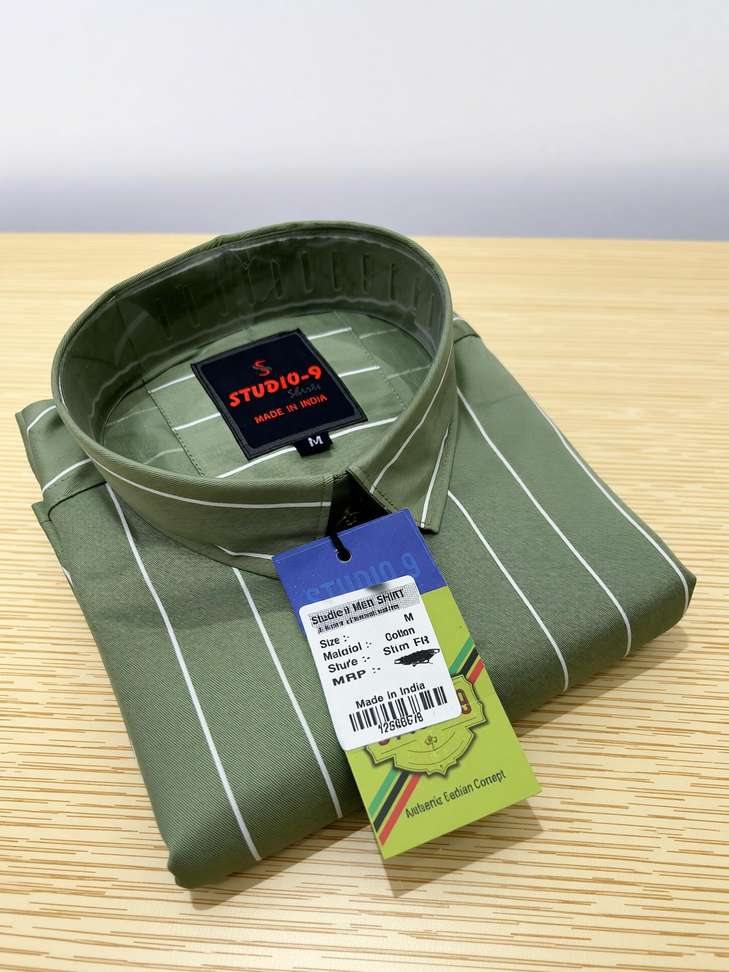 🔥 84% OFF: Studio 9 Men Striped Casual Light Green Shirt – Loot Deal!